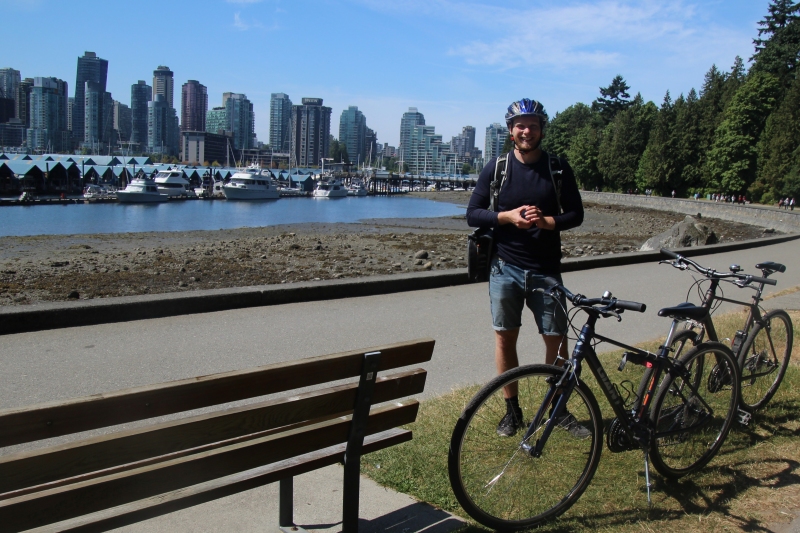 Kasper på cykeltur i Stanley Park, Vancouver, Canada
